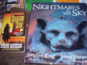 – Nightmares in the Sky, un libro de fotografía (ahora no recuerdo el fotógrafo) que además incluye textos de Stephen King. Me he quedado flipada al ver lo grande que es, y por el precio no está nada mal!! Las fotos desde luego son muy chulas, y son de gárgolas!!
