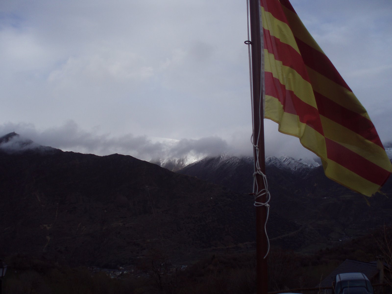 La senyera estaba a huevo para hacer una de esas fotos nacionalistas. Per tant, aquí tenim la Senyera amb els Pirineos nevats al fons.