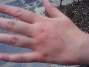 Una foto de la mano, aunque no se aprecia lo hinchada y chunga que estaba. En esa me llevé un golpe del que todavía conservo algo de moratón tantos días después, y varias heridas.