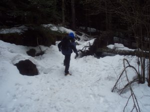 El barranquismo consta de tres actividades: descender por toboganes dejándose deslizar por la roca, hacer rappel con cuerdas apoyándose con una mano y con la otra soltando cuerda, y pasamanos, que es ir bajando por la cuerda, a peso. Nuestro nivel era de iniciación, y aún así fue bastante jodido. El agua estaba congelada, todo resbalaba un montón (incluso llevando bambas y todo), y no llevábamos guantes, con lo cual las manos las teníamos congeladas, sobre todo yo. Es verdad, no vi a nadie que tuviera las manos peor que yo, se me hincharon y se pusieron insensibles, tenía que darme de hostias para reanimarlas, más que nada porque para bajar por una cuerda, tenía que tenerlas funcionando. XD