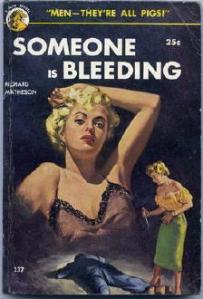 Las siguientes dos novelas que leí de Matheson fueron Fury on Sunday y Someone is Bleeding. Eran en todo momento tan brutales y reales como cualquiera de mis escritores Gold Medal, y con una atracción añadida: en las novelas de Matheson, el romance, a menudo un romance doloroso, conducía la historia tanto como la violencia. A día de hoy prefiero que mis novelas tengan historias entre hombre y mujer en ellas. No romance. Sino romance.