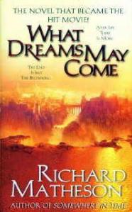 What Dreams May Come (Más allá de los sueños) Mi mujer, Carol, leyó esto poco después de ser diagnostica de Esclerosis Múltiple. (No hay que preocuparse, ahora no tiene síntomas). El libro cambió su vida, como siempre le dice a la gente cuando les recomienda encarecidamente que lo lean. Encontró en él elegancia y belleza, el tipo de espiritualidad que nunca había sido capaz de encontrar en iglesias, una sensación de bienestar espiritual sin restricciones de dogma o doctrina. Aunque mi reacción fue menos dramática, quedé impactado por cómo de similares son mis vagos sentimientos religiosos a los de Matheson. Es la historia de amor definitiva, de un marido que busca, y definitivamente salva, a su mujer incluso aunque ha muerto y existe en otro plano de la realidad. No me siento inclinado a novelas de espiritualidad, pero esta funciona tanto como fascinante fantasía como de una especulación seria acerca de la vida después de la muerte.