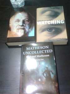 – RICHARD MATHESON UNCOLLECTED, de la ed. Gauntlet Press, con material inédito de Richard Matheson, el guión que escribió para Star Trek y relatos y algunas cosillas más. Mi copia es la 142 de 500. ^^ Pongo foto de la portada y la contraportada juntas, son muy bonitas.