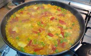 Y esta foto es del maravilloso arroz con pollo que hizo el míster de la casa hoy con la paellera nueva.