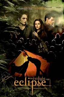 El viernes por la noche estaba sola en casa, ultimando los detalles para el inminente formateo de mi portátil y me hacía falta poner serie o peli en la tele para poder hacer varias cosas a la vez (ya sabréis que la programación en la tele los viernes por la noche es horrible). Siempre que estoy sola, me gusta tener algo puesto a la vez que hago otras cosas, así parece que cunde el tiempo más. Al lío pues… el viernes no tenía capítulos descargados de ninguna de las series que sigo, así que me fui a la carpeta de pelis. Y tenía Eclipse bajada… pero ¡cómo! Una copia en TS-Screener horrible, llena de ruidos y voces de la gente que estaba en el cine, un horror, y encima durante la peli apareció tres veces una URL, supongo que de quien había grabado semejante horror… no me la apunté porque si me da por ir por allí le iba a decir pocas lindezas. Pero qué cojones, como estaba de buen humor con el fin de semana, me dije que ver la peli así sería lo más parecido a compartir cine con adolescentes rebosantes de hormonas. Y como es algo de lo que se habla mucho y a veces nunca se ha vivido, pensé que sería lo más cerca que estaría nunca de vivir algo así. Auriculares y a ver la peli.