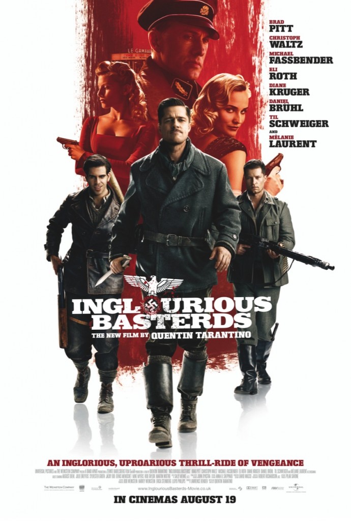 De Bastardos sin gloria solo decir que a mi me encantó, yo si soy muy tarantinezca y me encanta el toque del director en esas películas que hace que pueden ser a veces bastante pesadas. Y claro, el doblaje arruina todo! Los subtitulos son indispensables en esta peli para poder reir a mándibula suelta con el «perfecto» italiano de Brad Pitt. En general es una película amplamente recomendable