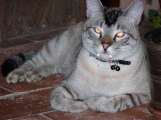 Mostrando su verdadera apariencia me lo encontré en esta ocasión, en que sacándole una foto a lo que creía que era mi adorable mascota, al descargar las fotos al ordenador, me encontré con que la realidad era otra bien diferente. Ahora debo tratar de convivir sabiendo su terrible secreto, y satisfaciendo sus caprichos gatunos para no desencadenar su ira.