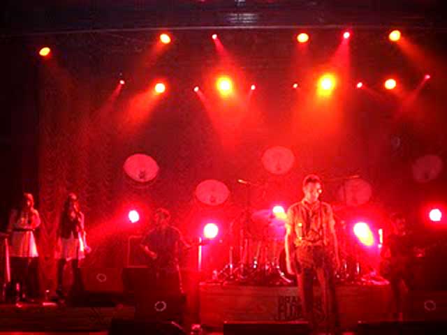Y como llegamos tan sumamente tarde, un par de chicos (chico+chica) llamados al parecer The Rewards (aquí se puede ver un vídeo suyo) ya estaban amenizando la velada. Nosotros, por suerte bastante entretenidos en dar con el huequecito ideal para colocarnos, no le prestamos mucha atención hasta después, que tuvimos que sufrir los cuarenta minutos que quedaban hasta que saliera Brandon al escenario. Y digo sufrir porque realmente, o es porque no es mi tipo de música, o lo que sea, pero resultaban bastante pesaditos. He intentado buscar información por ahí del grupo para poner un enlace o algo, pero no la he encontrado fácilmente. Así que nada, así se llamaban los teloneros. Lo curioso es que he leído por ahí que son un cuarteto y allí sólo había dos personas. Suerte que estábamos los dos y podíamos darnos charla, además de aguantar el tipo frente a empujones y diferentes pugnas por conseguir el mejor sitio, si no, esos cuarenta minutos se me hubieran hecho eternos.