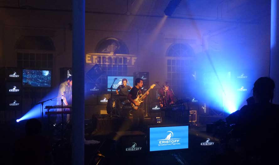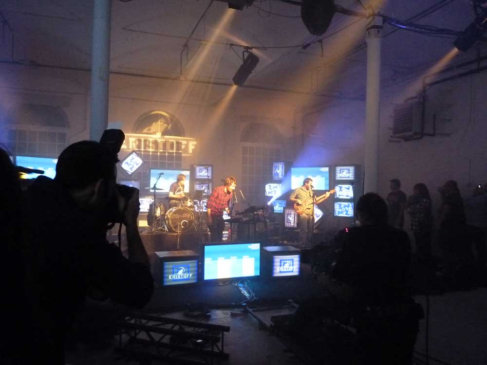 La cosa es que como decía, el concierto se retransmitía a través de la web que Eristoff tiene dedicada a este Festival. Es un concepto nuevo de concierto, en el que cada uno puede ver al grupo tocar desde casa. La cosa es que algunos tuvimos la suerte de poder ver in situ cómo se hace todo eso.