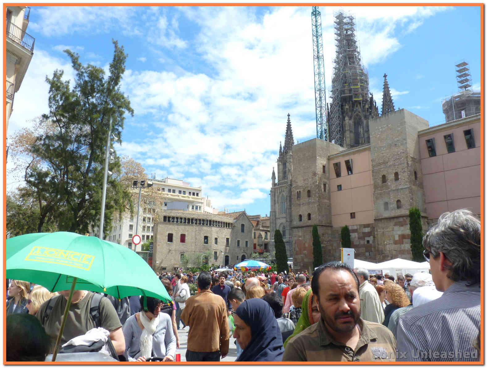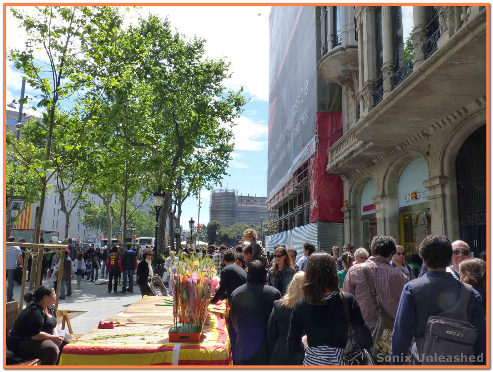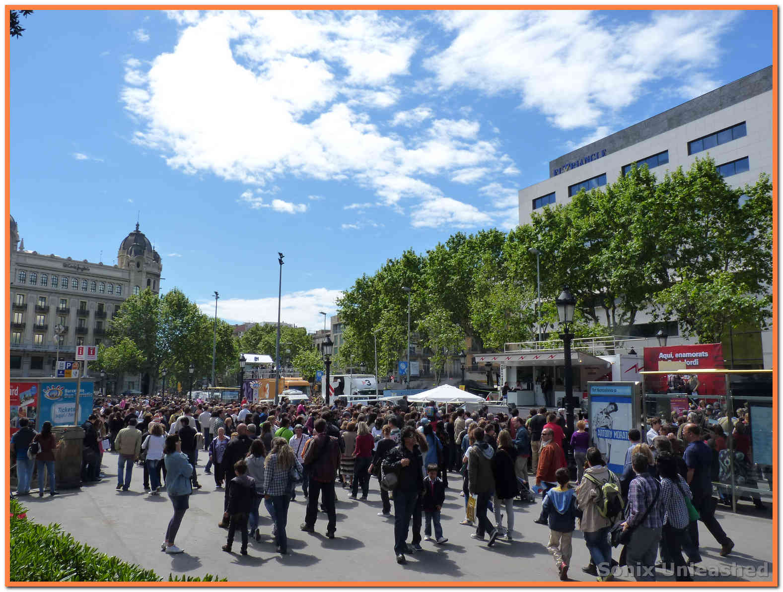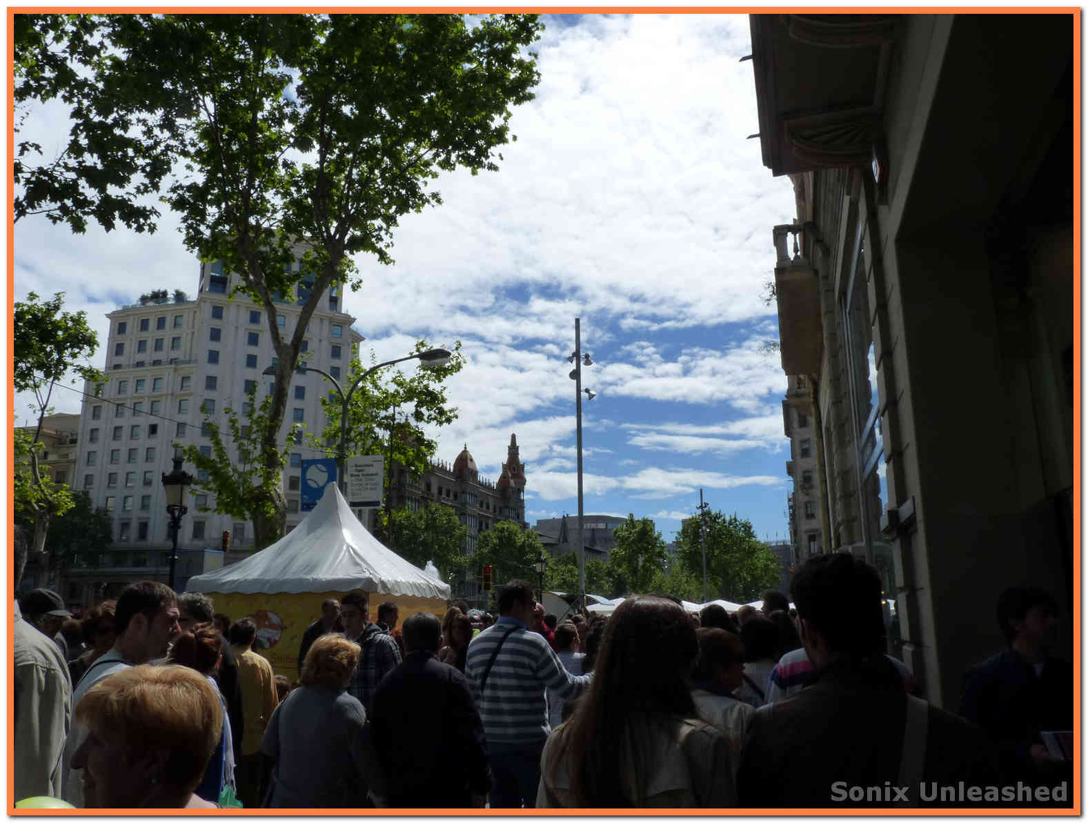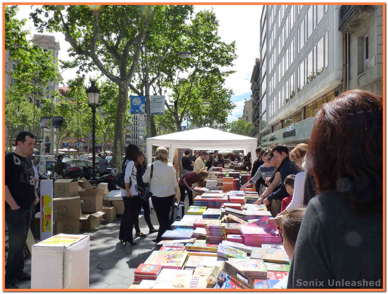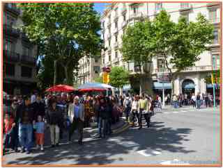 Pues bueno, estas son las fotos que saqué ayer por Barcelona. Nos agobiamos un poco con tanta gente y no quisimos ir por la Rambla, pero sí estuvimos paseando por Passeig de Gracia, el Portal del Angel, la Catedral y algunos sitios más… pero ya digo, las multitudes no son para mí, no nos paramos mucho en ninguna parte y más bien estuvimos disfrutando del ambiente de consumo de libros que se vivía. Ojalá se compraran muchos más libros, y se leyese mucho más, pero todo el año y no solo en Sant Jordi.