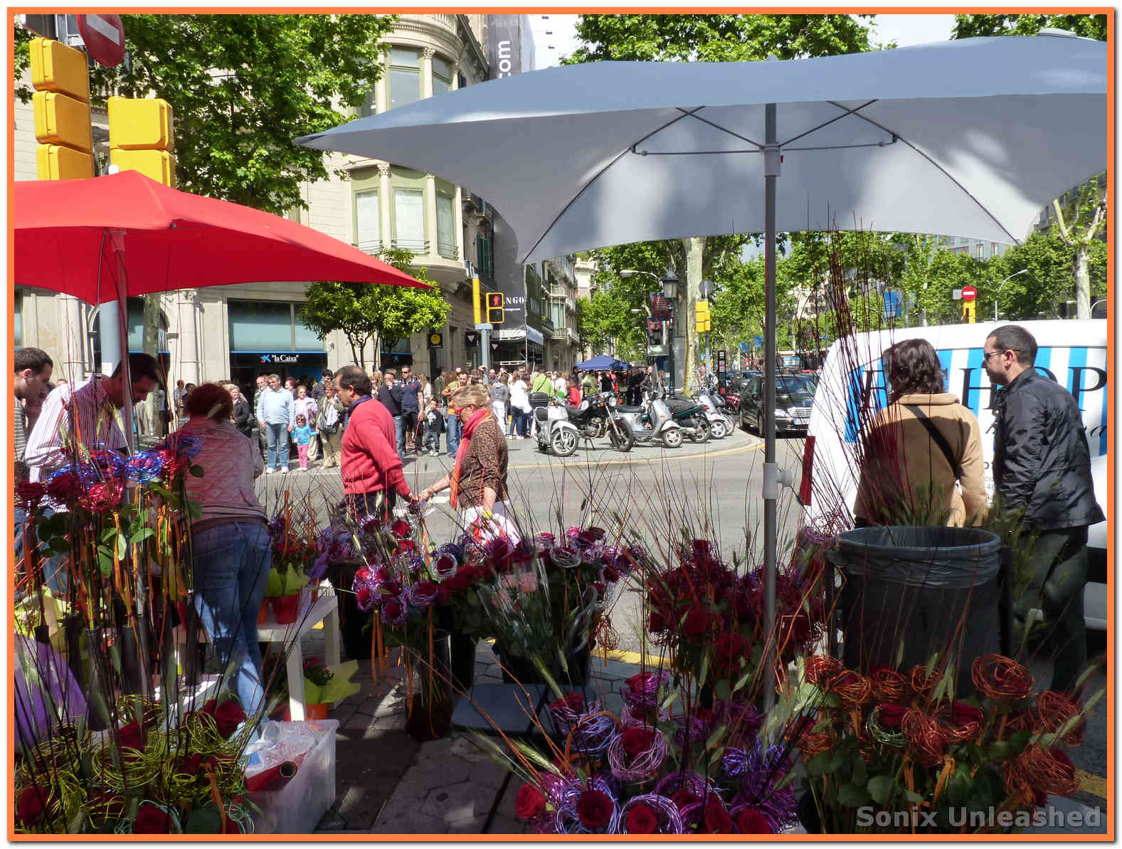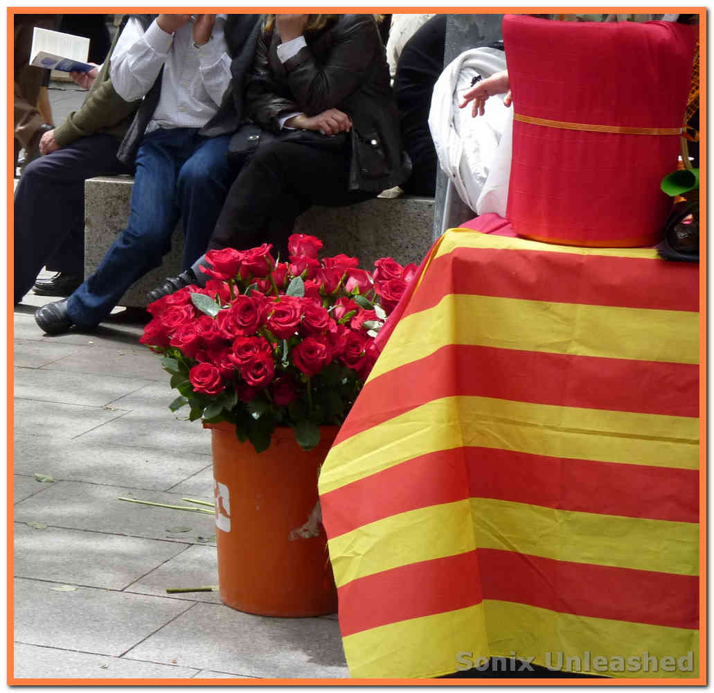 Había mucha gente por la calle, puestos de libros, puestos de rosas.
