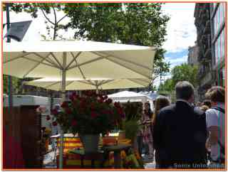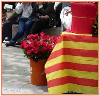 Un puesto con rosas y la senyera…