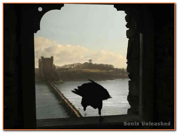 Después, vemos un par de imágenes impresionantes de la fortaleza de los Frey, los Gemelos (!!!), donde gobierna Walder Frey, uno de los banderizos de los Tully, que, por tradición, nunca ha resultado ser un gran apoyo ni un hombre leal en absoluto. Theon, Robb y Catelyn hablan sobre la conveniencia de cortar las comunicaciones de Walder Frey con el exterior para que no pueda comunicarles a los Lannister sus movimientos. Por supuesto, cortar las comunicaciones implica cargarse todo cuervo que salga del castillo. Se encuentran en una mala situación, ya que tienen que pasar por ahí para seguir su marcha hacia el sur. Y durante la conversación en la que debaten qué deben hacer, pronuncian algunas frases que realmente tienen bastante significado. Y no digo más. Solo que el tal Walder Frey se las trae, menudo personaje.