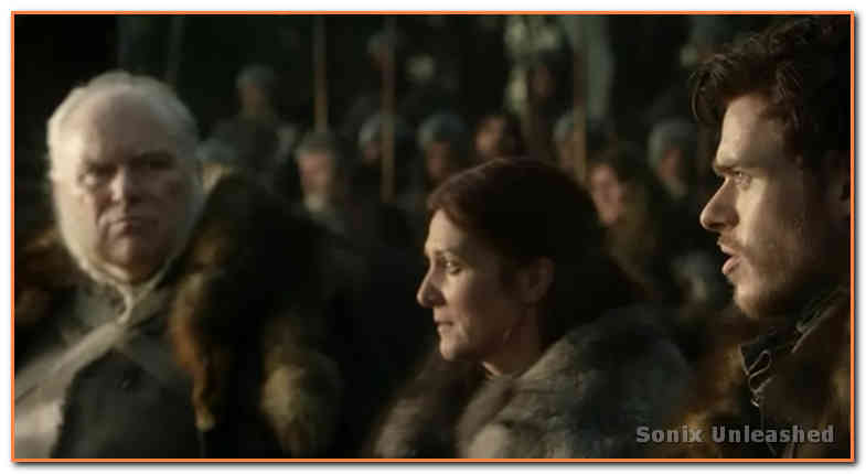Luego pasamos a una escena en la que Jon va a donde están sus compañeros. Se ve que con su hazaña de matar a los muertos y salvar la vida de Mormont, se ha convertido en una especie de celebridad. Allí, ve a Sam cabizbajo por un motivo. No es otro que las noticias que vienen del sur, sobre Robb que marcha con un ejército hacia el sur. No podía decírselo pero se lo dice, y claro, Jon opina que debería estar con su hermano en un momento así.