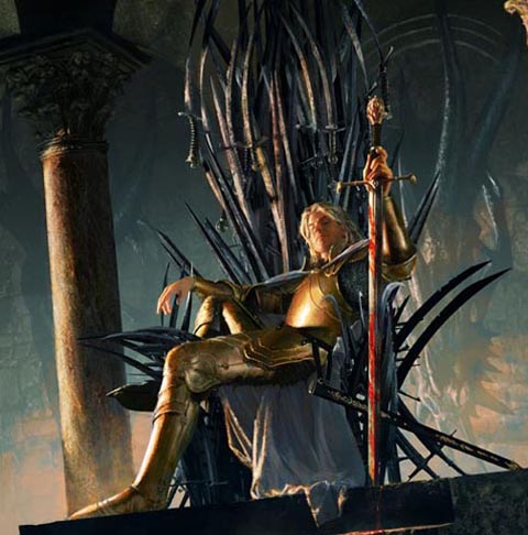 «Ciertamente es un tema genuino y legítimo como centro de la fantasía, pero creo que la batalla entre el Bien y el Mal se lleva a cabo en los corazones de los individuos», dice Martin. «Todos tenemos bien en nuestro interior y mal en nuestro interior, y podemos hacer una buena obra el martes y una horrible y egoísta el miércoles, y para mí, ese es el gran drama humano de la ficción. Creo en los personajes grises, como he dicho antes. Todos tenemos bien y mal en nuestro interior y hay muy pocos dechados de virtudes y muy pocos orcos. Un villano es un héroe en el otro lado, como alguien dijo una vez, y creo que hay gran parte de verdad en eso, y eso es lo interesante. En el caso de una guerra, ese tipo de situación, así que creo que algo de eso es definitivamente mi objetivo».