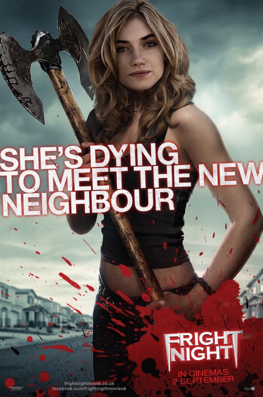 1. Esos posters de Fright Night… el juego de palabras con lo de «stakes» mola, y una rubia con un hacha siempre es un acierto seguro, pero Colin Farrell… en su estado «normal» ya me da grima con extra de repelús, pero en ese cartel dan ganas de matarrrrr!!