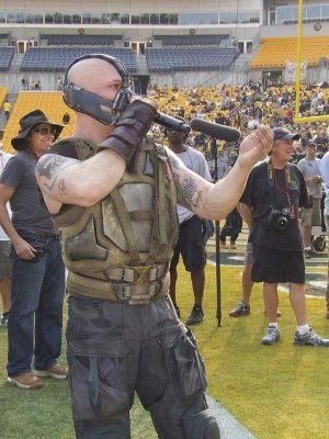 Y este último es un vídeo de una escena de rodaje con Bane soltando un discursito en un estadio y diciendo a Gotham que «tome el control», anunciando que tiene un rehén.