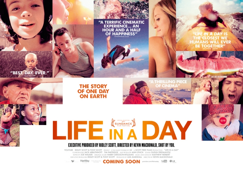 ¿Qué estabas haciendo el 24 de julio de 2010? Era sábado, así que probablemente muchos estabáis en la playa, o de visita con la familia, o haciendo quién sabe qué. ¿Yo? No me acuerdo, como máximo testimonio de ese día podría tener lo que sea que publicara en el blog (y después de hacer una breve búsqueda, puedo decir que no fue nada demasiado memorable xD). Pero bueno, en ese día, como en cualquier día, pasaron muchísimas cosas, más de las que podamos imaginar. En este documental, producido por Ridley Scott y dirigido por Kevin Macdonald, se ha intentado hacer una selección de imágenes de entre 4.500 horas de material enviado por los internautas. Todo ello forma un mosaico de hora y media, donde la música acompaña a imágenes de toda la tierra, y escuchamos las voces de tantas personas.