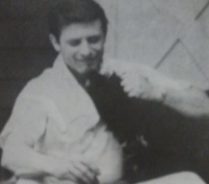 Foto de Harlan Ellison con su perro Abhu, incluida en el libro. Este perro fue la inspiración para el relato de "A boy and his dog"