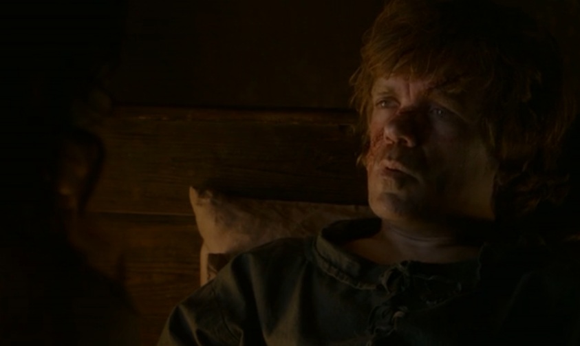 Empezamos con Tyrion despertándose en una habitación que no era la suya hasta el momento para darse cuenta de que la gloria de la batalla se la ha llevado Tywin por su aparición triunfal. Para el enano, a pesar de su actuación heroica cuando Joffrey se fue con el rabo entre las piernas, quedará como siempre la peor parte: tiene la cara herida y también, una vez vez más, nadie hablará de su papel en la batalla si no es para decir cosas malas.
