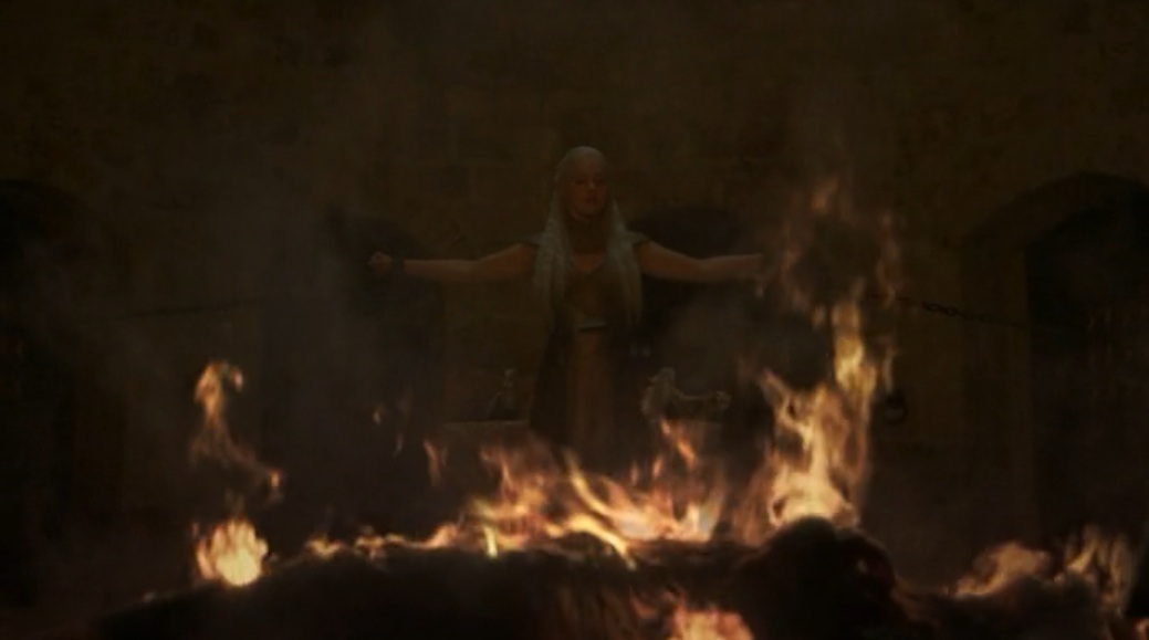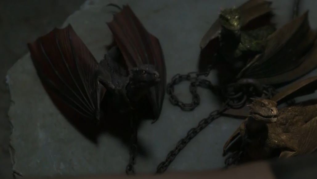 Daenerys va a recuperar a sus dragones a la asa de los Eternos. Va acompañada de Jorah y uno de los de su khalasar. Eso sí, parece que los de Qarth no tienen en mente que entre con ningún guerrero, así que cuando llega el momento le dejan entrar a ella sola.