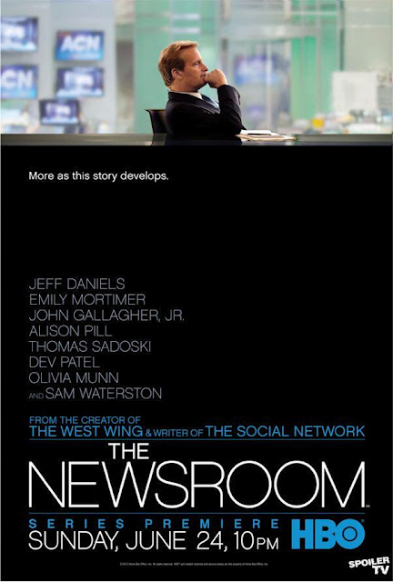 Y vengo hoy con un piloto nuevo (lo emitieron en los USA el día 24). Esta es una serie dramática creada por Aaron Sorkin, que trata sobre lo que ocurre tras las cámaras del canal de noticias ficticio ACN (Atlantis Cable News). El presentador, Will McAvoy (Jeff Daniels), es el protagonista, y lidera un equipo de profesionales que trabajan para llevar las noticias a la pantalla.