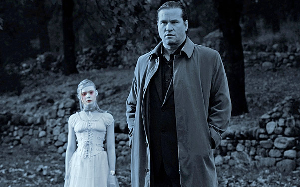 Me encuentro con muchas dudas a la hora de escribir esta reseña. Por un lado, hubo cosas que me gustaron de la película. Me gustaron las actuaciones, me gustó la atmósfera que se respira, toda la mitología del pueblo, e incluso algunos de los iconos que se explotan a lo largo de la película (el hotel, el reloj con siete esferas). Lo malo es que en la película no se ve un acabado cuidado, y a ratos parece más un capítulo de cualquier serie sobrenatural de la tele que una película (¡y una de Coppola, nada menos!). He visto en IMDB que el presupuesto estimado es de 7 millones de dólares. Se nota. Las actuaciones están bien, con Val Kilmer a la cabeza. No soy especialmente fan de este actor ni todo lo contrario, pero aquí está creíble y hace un buen trabajo, al igual que el resto del reparto (con presecia destacada de Ben Chaplin como Poe, Elle Fanning como Virginia, y Bruce Dern como sheriff del pueblo). El problema es que el ritmo de la historia es raro, el montaje no acabó de gustarme, y la peli se ve muy barata. De todos modos, es una historia curiosa y con intriga, con un sentido del humor bastante particular y una narrativa curiosa.