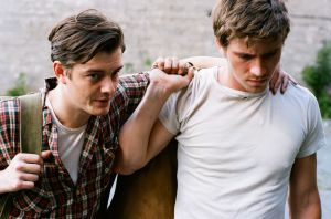 Para mi alegría, y ya sé que he dicho que no voy a hacer mucha referencia al libro – esta es inevitable – la película inserta a la perfección algunos fragmentos del libro que me encantan (y no voy a insistir sobre el tema, porque ya alguna vez he publicado entradas recopilando algunos de mis favoritos, hay tantos y tan buenos…). En esos momentos en que Sal se encuentra solo frente a su máquina de escribir, escucharemos su voz en off. A veces también la voz en off de Dean, que le escribe mientras están cada uno en una punta del país, pero son las menos. Aquí Sal es el narrador, el observador, y de hecho en la película me encontré más veces (que en el libro) pensando que Sal no actúa ni vive tanto como observa, que es aquí Dean el que lleva la voz cantante gran parte del tiempo. Pero matices apartes, estos chicos viven en la carretera durante el tiempo que dura el viaje, y son días intensos. En el transcurso de la historia vamos a conocer mejor a los personajes. Dean, con sus constantes líos de faldas y su cariño incondicional por Sal. Carlo, con tantas locuras en la cabeza y su admiración por Dean. Sal, siempre observando y siempre presente. Sus muchas experiencias con las drogas, sus aventuras sexuales, orgías, fiestas… toda la historia parece discurrir entre muchísimo humo y litros del alcohol. Y tiene gracia que en realidad estos personajes sean espejos de otros que existieron en realidad (Neal Cassady, Allen Ginsberg y el propio Kerouac). Con respecto a esto, tengo que volver a recomendar Howl, película que tiene como protagonista a Ginsberg y su famoso poema (la reseñé hace un tiempo), para completar la sesión de cine de la generación beat. Seguro que hay otras películas sobre estos personajes y este tema, así que estoy abierta a recomendaciones.