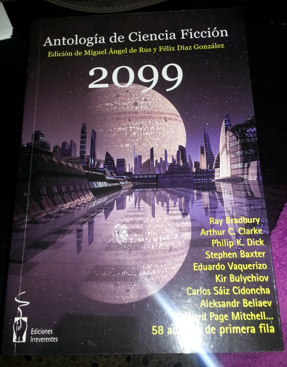Es una antología de relatos de ciencia ficción titulada 2099 que pienso que disfrutaré muchísimo y que reseñaré en cuanto pueda leerla, y me llegó del blog El sótano de los sueños. Este es: