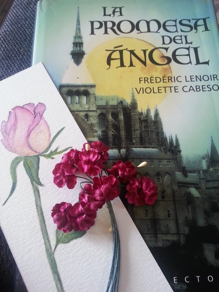 Aparte de eso, recibí mi regalito del Sant Jordi bloguero, que venía de mi tierra (Galicia), pero no exactamente de mi pueblo. Este año he recibido libro de Ángela, del blog Anduriña. Se titula La promesa del ángel, y aunque no me sonaba, en cuanto he visto de qué va, ha despertado mi interés. Misterio, arqueólogos, rituales antiguos… vamos, que pinta bien!