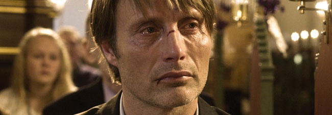 Jagten_02El punto de partida de la historia es este… Imaginaos una pequeña comunidad en Dinamarca, un pueblo. Imaginaos los vínculos que pueden existir entre las personas que viven ahí. Todo el mundo se conoce, todo el mundo se trata con bastante frecuencia, y esto se ve reforzado por ciertas tradiciones y circunstancias. En esta película tenemos un universo de personas de mediana edad, con hijos, que coinciden en reuniones del colegio, de la guardería… Lucas (Mads Mikkelsen), el protagonista, es una de estas personas. En el momento en que empieza la película vemos cuáles son sus circunstancias vitales en ese momento: con un divorcio difícil, trata de mantener una relación más o menos normal con su hijo; además, ha perdido el trabajo que tenía como profesor de instituto, y por eso aprovecha la oportunidad de trabajar en un jardín de infancia. Allí, parece que todo va bien cuando se ve lo bien que  se le dan los niños, y cuando conoce a una compañera con la que inicia una relación amorosa. Pero las cosas se tuercen – y cómo – cuando como consecuencia una cadena de circunstancias, una de las niñas de la guardería (Klara, interpretada por Annika Wedderkop) lo acusa de haber tenido un contacto más bien inapropiado con ella. La cosa de por sí ya es bastante complicada, pero es que además Klara es la hija del mejor amigo de Lucas, Theo (Thomas Bo Larsen).