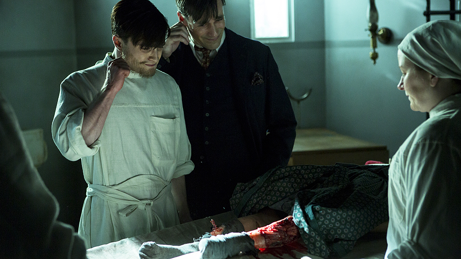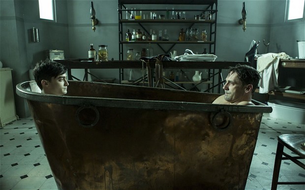 Tengo que reconocer que no sabía ni de qué iba cuando me puse a verla. Lo único que sabía es que Jon Hamm (Mad Men) y Daniel Radcliffe (Harry Potter) eran los protagonistas, encarnando al mismo personaje, en su juventud y en la edad adulta. Ya cuando me puse al tema de verla supe cuál era el argumento. A country doctor’s notebook (título traducido al inglés del ruso) es un conjunto de