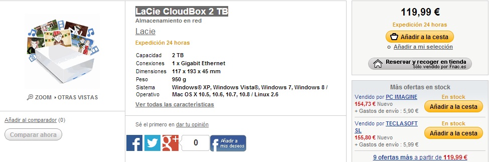 LaCie CloudBox 2 TB: 119,90 €