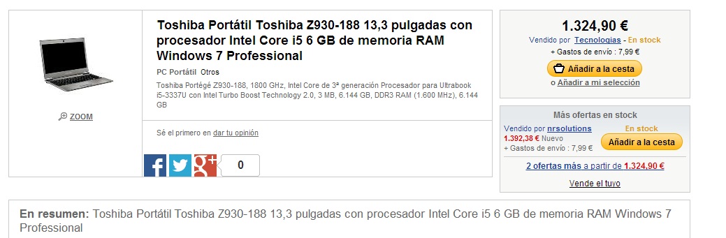 – Toshiba Portátil Toshiba Z930-188: 1.324,90 €