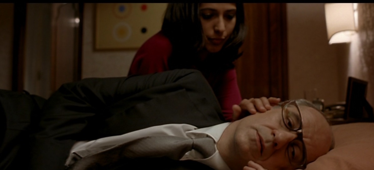 Tenemos aquí a un protagonista carismático e interesante, interpretado de forma magnífica por Toni Servillo (de verdad que tengo que ver más películas de este hombre…). Buenos secundarios, aunque ninguno llega a brillar – ni de lejos – tanto como él. Él es la película. La historia también está adornada con buenos diálogos, salpicados de reflexiones que pueden conmover, sorprender, y en definitiva, hacernos pensar. El marco del hotel es una constante, aunque la acción transcurre en algunos momentos en otros lugares. Será recurrente la habitación de Titta, y el vestíbulo. La música servirá para dar énfasis a algunas escenas, y realmente es música que no pasa desapercibida. Reconozco que en determinados momentos no me pareció del todo adecuada, pero en conjunto es muy ecléctica y bastante particular (aquí se pueden ver algunas de las canciones que salen en la película).