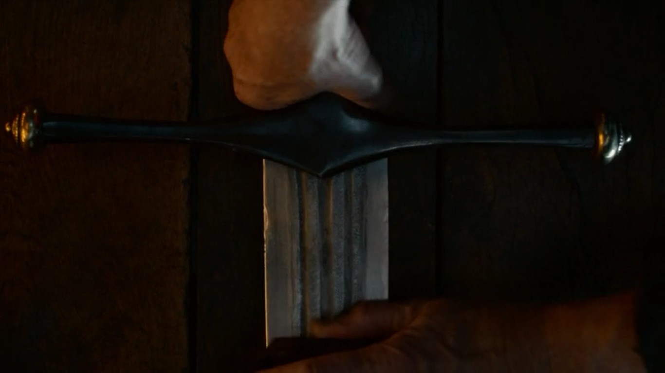 Esta vez tenemos una pequeña escena introductoria antes de la intro con música de la serie. Empezamos el capítulo con un Tywin Lannister pletórico, que después de lo ocurrido en la Boda Roja y las anteriores temporadas en general, tiene todos los motivos para sentirse el ganador de la historia. Así que actuando como tal, vemos como a sus órdenes, funde la espada de Ned Stark (Hielo, se llamaba) y la convierte en otras dos. Es todo un símbolo de la derrota y caída de la familia Stark, que como sabemos, a estas alturas está muy, muy mermada.