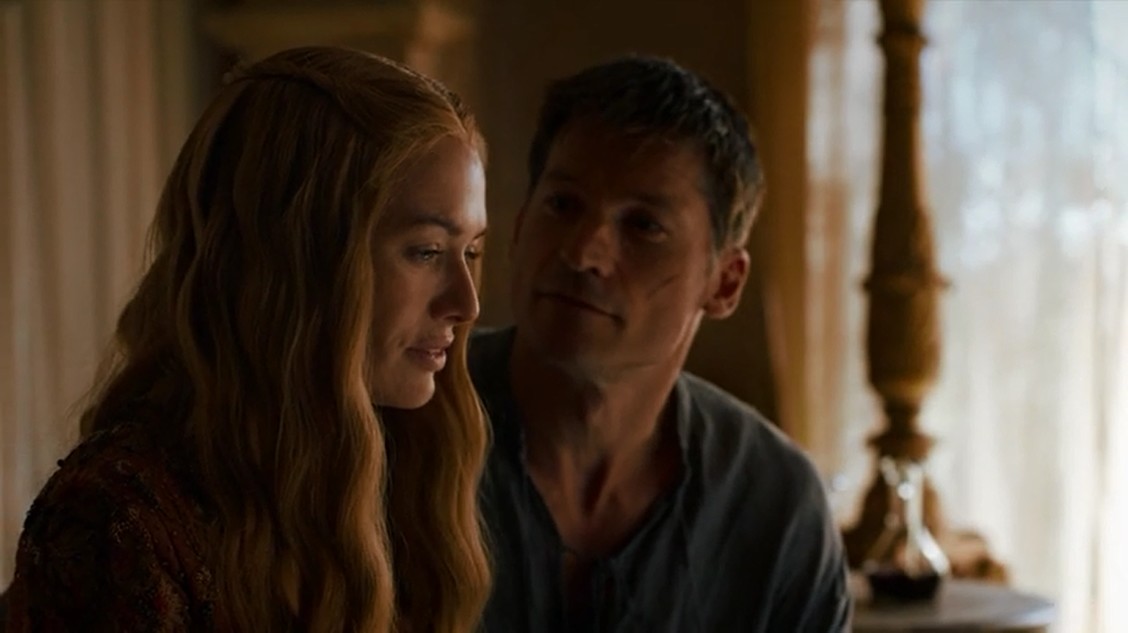 Jaime estaba manco… y ya no. El maestre Qyburn le ha hecho una mano metálica, que si bien bastante antiestética e inútil, llena el vacío de la antigua. ¿Soy yo, o esa mano ortopédica es ENORME? Cuando Jaime y Cersei se quedan solos y él intenta volver a sus pequeñas prácticas incestuosas, ella le rechaza y se muestra enfadada, porque según ella, él «la dejó sola». Si es que la culpa ha sido de él por dejarse capturar, jeje.