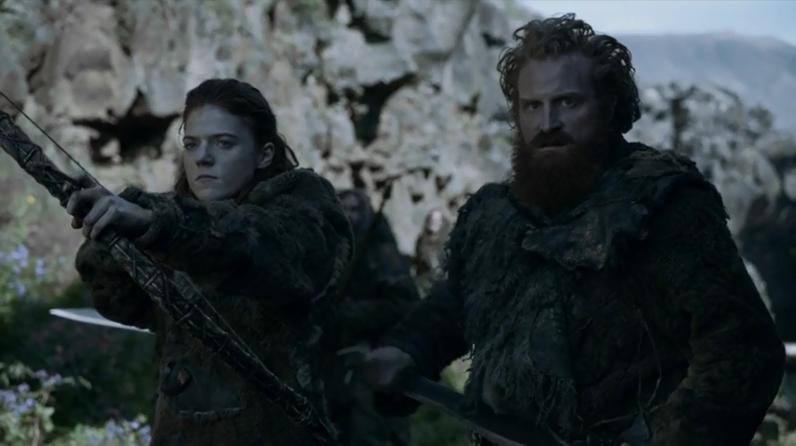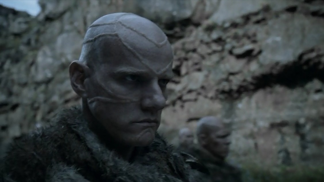 Y vamos al Norte, de vuelta con Ygritte y algunos salvajes, ella charla con Tormund y todavía recuerdan a Jon Nieve, al que consideran muerto ya, dado que ella le acertó con algunas flechas. En medio de la conversación llegan los thennitas, que, por qué no decirlo, dan bastante miedo y son bastante molones. ¡Y encima comen carne humana, son perfectos! La cosa es que los salvajes están marchando desde el Sur para encontrarse a la altura del Muro con Mance Rayder, que llegará desde el norte.