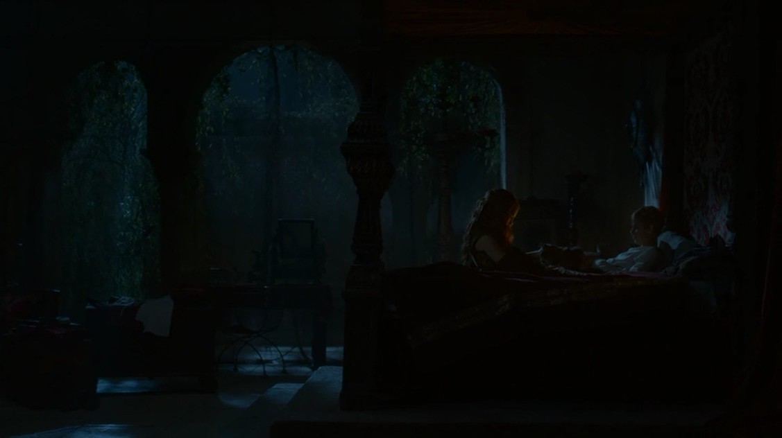 Y siguiendo en Desembarco del Rey, pasamos a los aposentos de Tommen, el futuro rey, que según Cersei están poco vigilados. Debe ser cierto, porque Margaery se cuela en la habitación y, aunque tiene la pinta de que lo va a convertir en un hombre, solo habla con él, sentando el precedente para volver a visitarlo más noches y así compartir un «secreto» común que solo conozcan ambos.