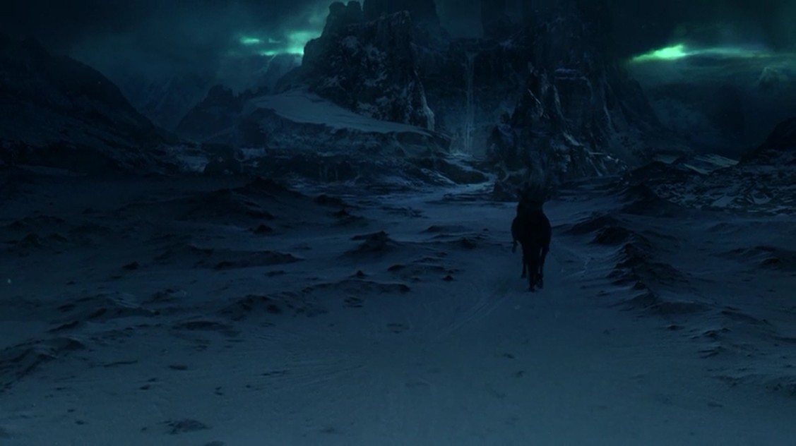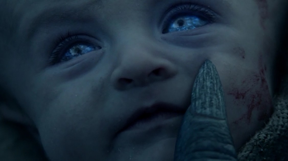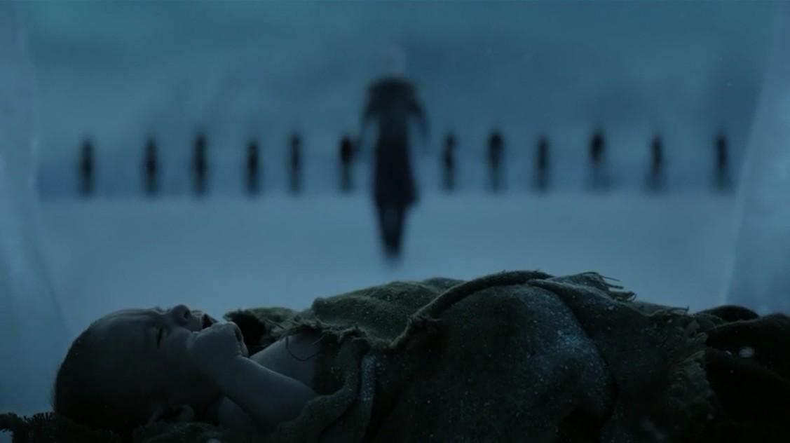 La última escena es un Caminante Blanco que lleva al bebé en su caballo. Lo lleva a un lugar lejano, al parecer a un centro de poder de los de su especie. Aunque de alguna manera por los libros ya se podía intuir qué hacían los Otros con los bebés, nunca se nos había contado de forma explícita. Por lo tanto, este es un posible spoiler de algún libro que todavía no ha leído nadie. Yo no lo tomaría a la tremenda, no creo que sea una cosa tan grave y en cambio sí que ha sido muy interesante de ver. El Rey Caminante es lo más, y parece una especie de Darth Maul descolorido. 🙂