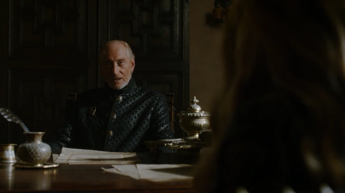 Pero Tywin no quiere hablar con Cersei del juicio de Tyrion. Ella está de acuerdo, pero insiste en considerar a Tyrion culpable, y de dinamitar el futuro de la familia Lannister. Amor de hermanos en estado puro.