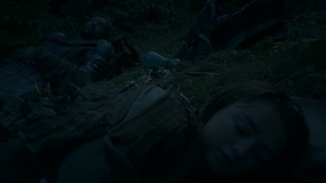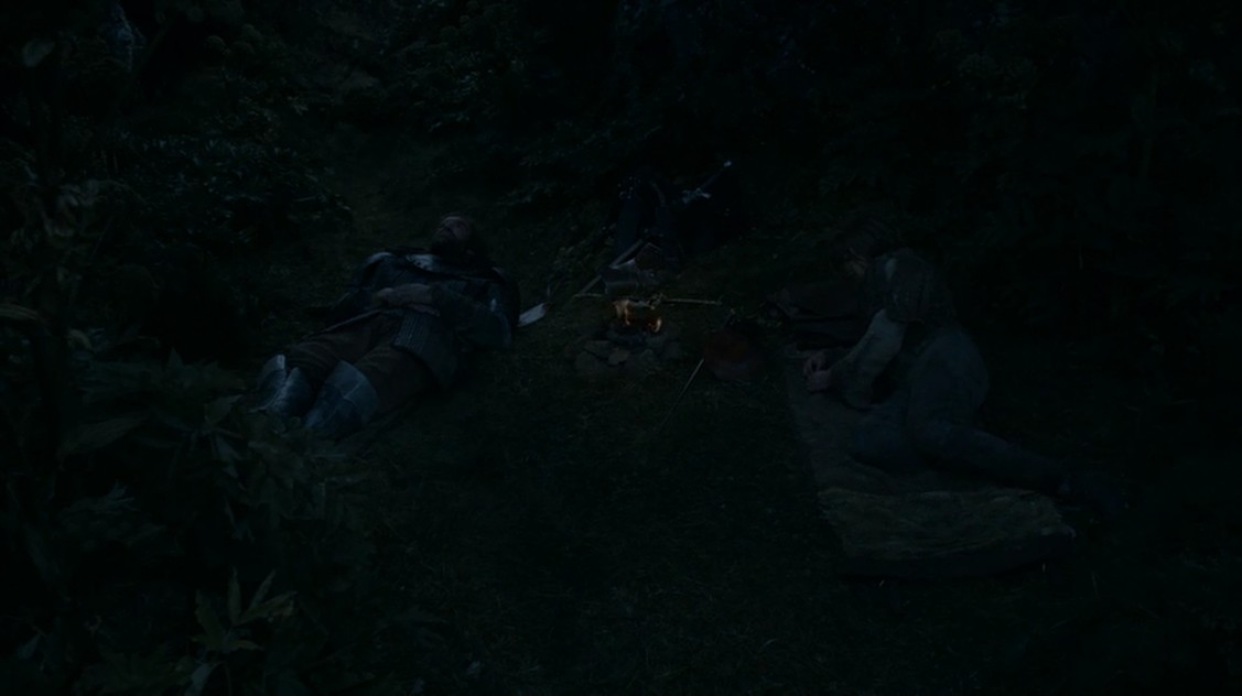 Arya y el Perro, que andan por los caminos de Poniente, están compartiendo unos momentos antes de dormir. Arya, como siempre, recita la interminable ristra de nombres de las personas a las que quiere matar algún día. El último nombre que pronuncia es: «el Perro».