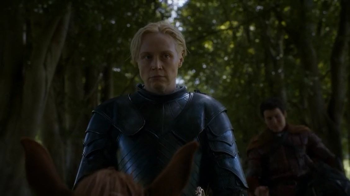 Brienne y Pod van hacia el Castillo Negro porque Brienne cree que Sansa habrá ido al encuentro de su hermano Jon. Resulta que el «Lucero de Tarth» no está muy conforme con que le hayan puesto a Pod como escudero, y le ofrece dejarlo libre para ir a donde quiera. Pero él se niega, y dice que es su escudero y que no se va a ir a ningún lado.
