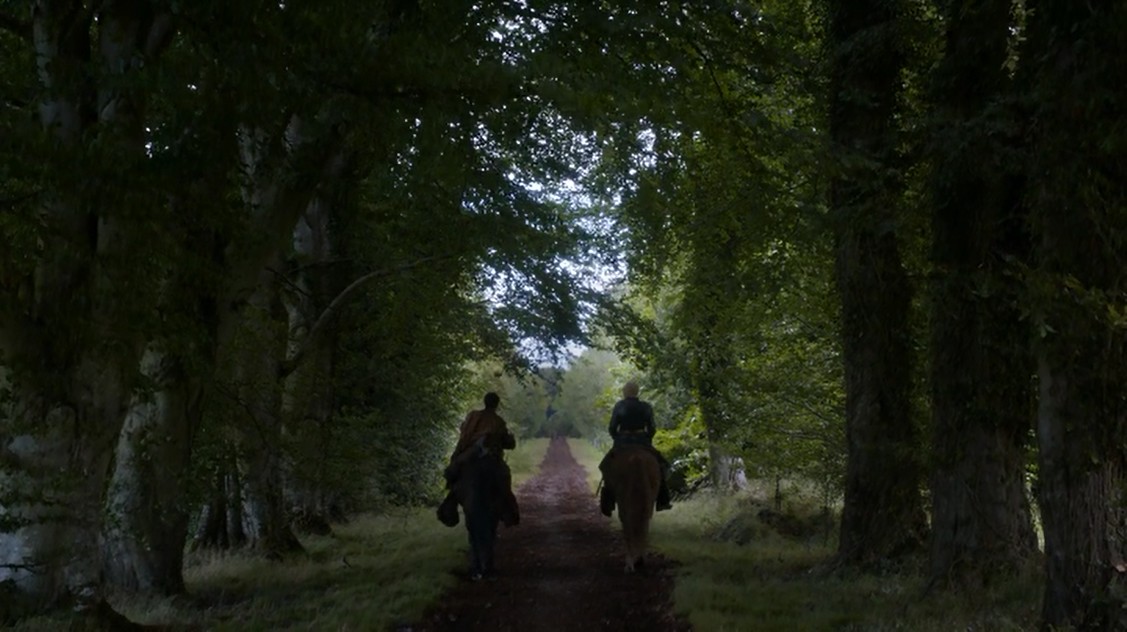 Otra vez Brienne y Pod. Pod demuestra ser un pésimo cocinero y no muy ducho en las habilidades de un escudero, pero acaban hablando de las cosas que hacía por Tyrion y él le cuenta la vez que mató a un miembro de la Guardia Real en la batalla de Aguasnegras.