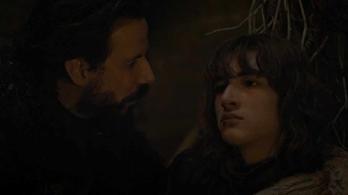 En un momento dado, y cuando se ven libres, Bran debe decidir si irse con su hermanastro Jon o seguir la pista al Cuervo de Ojos Verdes. Eso es porque Jojen le dice que Jon nunca le permitirá perseguir su objetivo. Así que planean seguir hacia el norte una vez liberen a Verano.