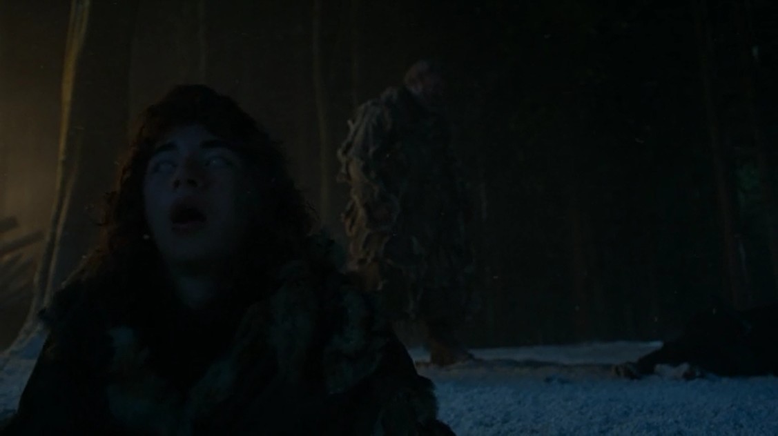 Dentro, la paz de los Reed y Bran no dura mucho, pues pronto llegan Karl y los suyos (Rast ha ido a violar a alguien por ahí) a «divertirse» con Meera. Jojen se ofrece a ayudar a Karl a cambio de que no toque a su hermana, y Karl se interesa por saber qué cosa le puede ofrecer. Le quiere ayudar con la Visión si la dejan en paz.