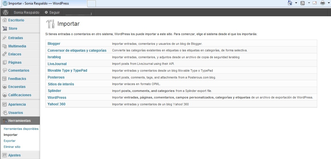 Lo que tenemos que hacer es ir a Herramientas-Importar. Ahí nos aparece un menú de posibles orígenes del blog, entre los cuales está Blogger. Me imagino que el proceso es parecido para todas las plataformas.