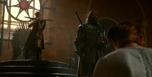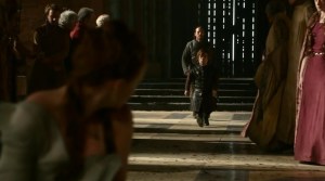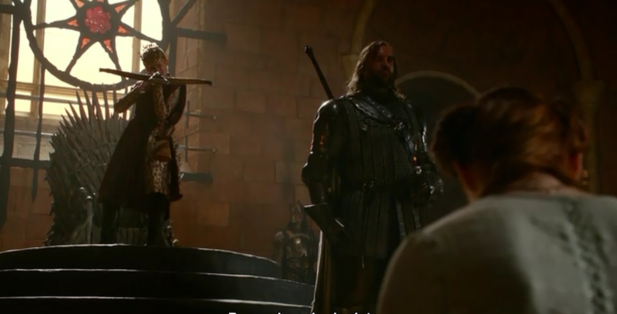 Y pasamos a una escena de esas que hacen que odiemos aún más a Joffrey, ese personaje que es tan absurdamente malo, tanto en los libros como en la serie.