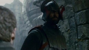 Y volvemos a Harrenhaal. Tenemos el primer contacto en la temporada (si no recuerdo mal) con la Montaña. ¿Pero qué pasa? ¡Nos lo han cambiado! Personalmente prefería más a la otra Montaña (Conan Stevens) que a esta nueva (Ian Whyte). Viendo la ficha en IMDB, parece que el rol inicial de Whyte en la serie era de Caminante Blanco, pero bueno, reconozcámoslo, la Montaña no tiene que saber actuar, solo ser grande.