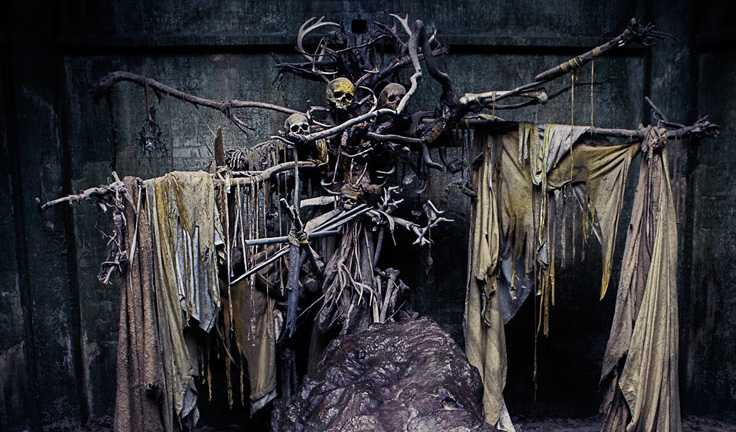 Rust: La transferencia de miedo y autodesprecio a una vasija autoritaria. Es catarsis. Él absorbe su terror con su narrativa. A causa de esto, es efectivo en proporción a la cantidad de certeza que pueda proyectar. Ciertos antropólogos lingüísticos piensan que la religión es un virus del lenguaje que reescribe senderos en el cerebro. Anula el pensamiento crítico.